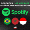 Карты/Ключи/Подписки SPOTIFY БРАЗИЛИЯ/ИНДОНЕЗИЯ/МАРОККО